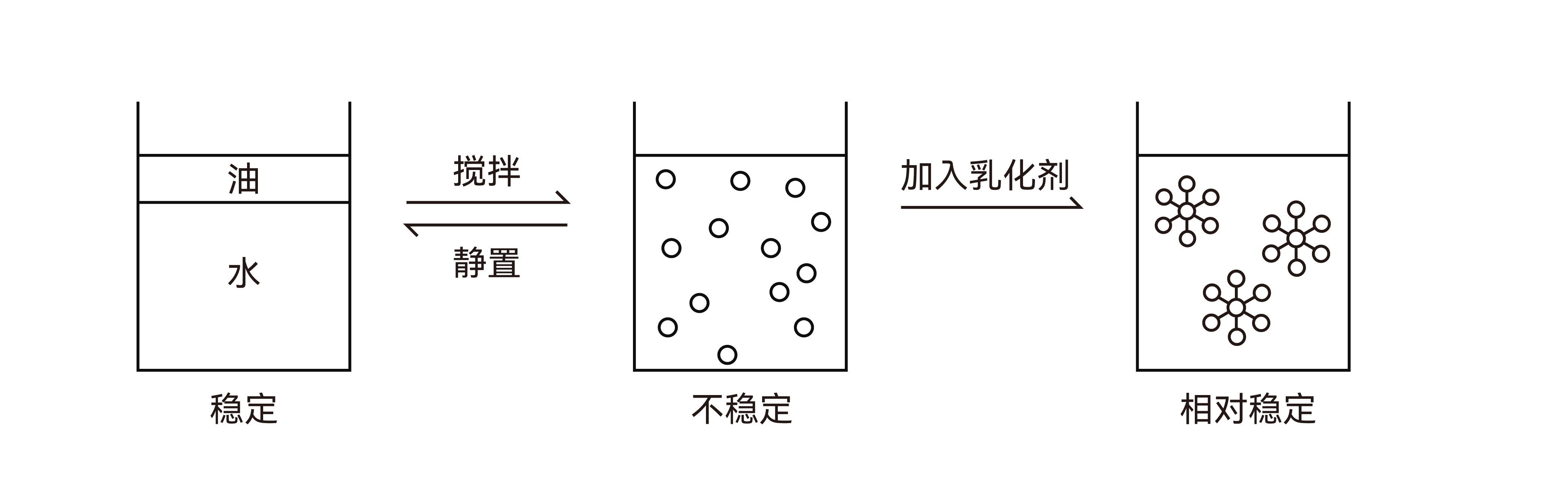 油和水在乳化劑作用下可形成相對穩定的乳狀液,仍是熱力學不穩定的體系,要使乳狀液具有較好的穩定性,應從選擇合適的乳化劑、降低界面張力、增加界面膜的強度等因素來考慮。